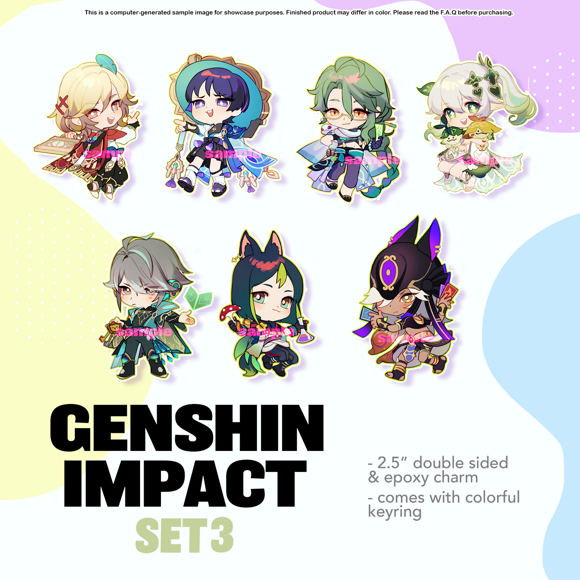 Third set of single-sided epoxy charms featuring some of the characters from Genshin Impact.